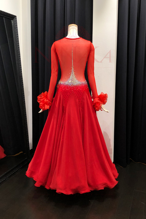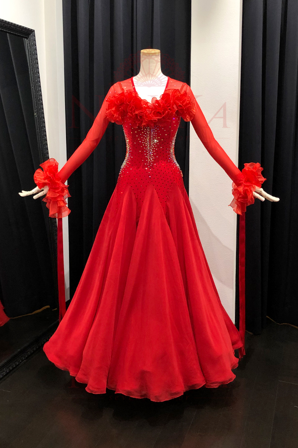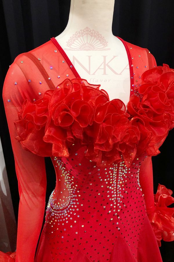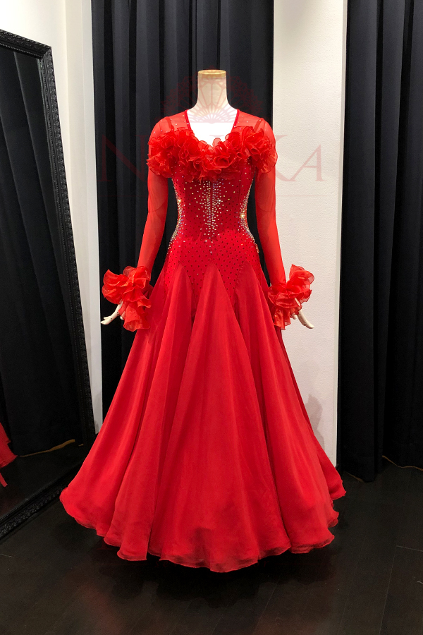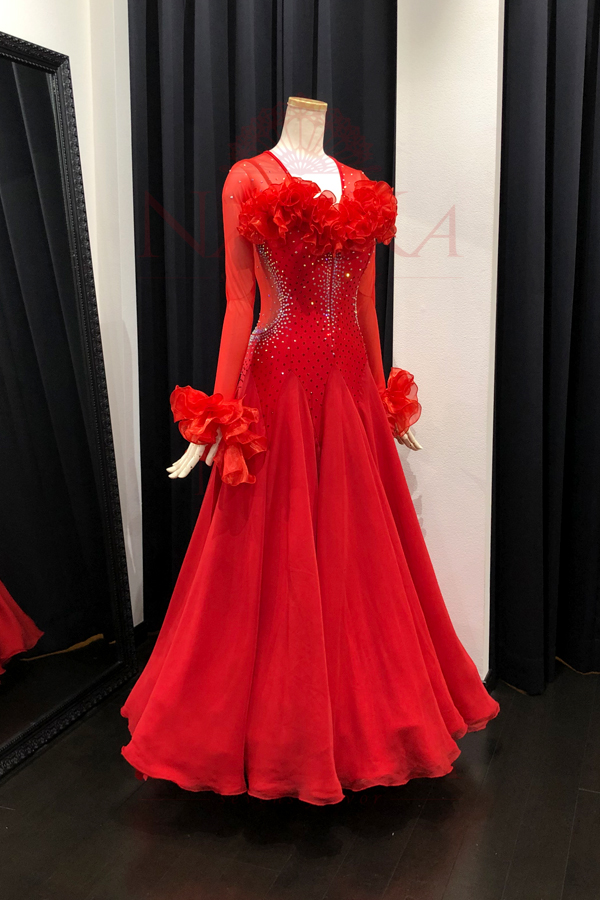 ※ 納期は通常約8週間から10週間です。受注状況等により納品までにそれ以上かかる場合があります。予定納期を過ぎた場合につきましても、お客様事由(競技会やパーティに間に合わない等の理由)でのキャンセルは一切お受けいたしません。また、ドレス代金以上の保証は一切致しかねます。